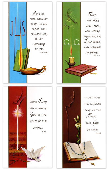 A symbolic series for all Christians, unparalleled in its inspirational beauty with meaningful texts. Assorted only. (Not all cards are included in each box.) Card size: 2 5/8" x 4 1/2".