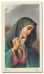 Very popular beautifully designed and lithographed in full color with gold edging. Back side is blank for imprinting with the prayer of your choice.
