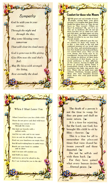 An assortment of 10 different Verse cards with comforting texts especially designed for the bereaved. (Not all cards are included in each box.) Card size: 2 3/4" x 4 3/4".