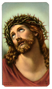 Very popular beautifully designed and lithographed in full color with gold edging. Back side is blank for imprinting with the prayer of your choice.